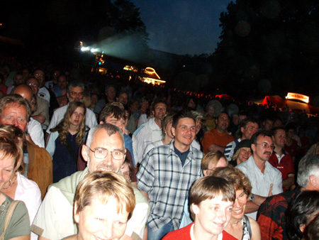 So endete ein fast normal-langes Konzert auf traditionelle Weise mit "morgen", wir konnten Klaus noch nachträglich zum Geburtstag gratulieren und dann das durchaus beeindruckende Feuerwerk bewundern, für das sich die Stadt Cottbus wahrscheinlich bis zur 900-Jahr-Feier verschuldet hat, um dann zufrieden nach Berlin zurückzubrummen! |