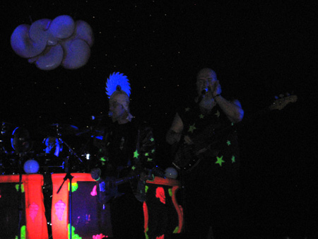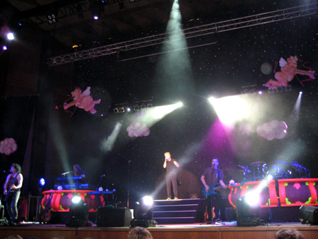 Aber: egal! Gut gefüllt war es, und für ein Sitzplatzkonzert gingen die Leute auch durchaus gut mit. von Anfang an wehte ein Hauch von Lusttempel durch das kühle Ambiente; die rosa Amorschweinchen und die heiße Action der Kapelle taten ihr Werk! |