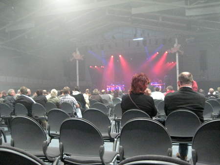 Und tatsächlich: es handelt sich um eine ziemlich gewöhnliche Mehrzweckhalle, die sonst wohl vor allem für Handballspiele genutzt wird. Auch mal wieder was anderes, so als Ambiente.. stimmungsfördernd allerdings nicht unbedingt. Unsere Plätze waren recht weit hinten, deshalb hab ich nicht so viele brauchbare Fotos erzielt.. | |
