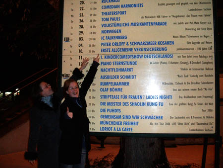 Sehr schön: die EAV gibt uns wieder einmal Gelegenheit, den Osten kennenzulernen! Dieses Mal wurde es eine Fahrt ins tiefverschneite Sachsen, nicht weit von Dresden; ein verschlafenes Kaff ist Weinböhla, aber es hat immerhin einen Zentralfriedhof.. nein, Zentralgaststätte hieß der Auftrittsort! |