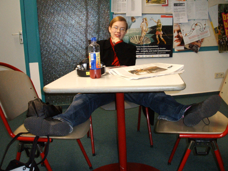 | ..fast hätte Springhuhn den Sendeplan vergessen! Da mußte er noch 3 Minuten vor Sendebeginn wieder runter über das ganze weitläufige OKB-Gelände bis zum Auto rennen, um die Show zu retten.. weil spontan, ohne Plan, geht ja bei uns nix.. Chrissy hat es sich derweil breit und gemütlich gemacht. Wie man sieht, benötigt sie 3 OKB-Stühle dafür. | |||||||||||||||||||||||||||||||||||||||||||||||||||||||||||||||||||||||||||||||||||||||||||||||||||||