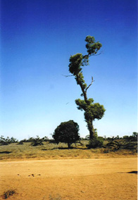Ein Tag im australischen Outback Die Fahrt geht 100 km nördlich von Mildura, die bewässerten Obst- und Weinbaugebiete werden von struppigem Eukalyptusbusch und dürrem Steppengras abgelöst, ab und zu sind noch Schafe am Weiden, dann geht die Strasse in einen staubigen Schotterweg über- wir sind im Outback! Der Willandra Lake ist ein seit 15000 Jahren ausgetrockneter See von beachtlicher Größe.. wo er lag, ist auch heute noch gut zu erkennen, es ist eine brettflache Ebene ohne einen einzigen Baum, nur von Salzbusch bewachsen, von einem Dünenguertel begrenzt. Die ersten am Wegesrand herumstehenden oder eilig davonhüpfenden und rennenden Kaenguruhs und Emus bestaunen wir noch - aber es werden immer mehr, der Fahrer muss sich zum Teil den Weg freihupen, wenn die Tiere in ganzen Gruppen beieinanderstehen. Große rote, mittelgroße blaugraue (das sind die Weibchen der roten) und kleinere bräunliche Kaenguruhs gibt es, und die beeindruckendsten Erfahrungen machen wir bei den Sanddünen selbst - weil es hier seit 15000 Jahren trocken und karg ist und es kaum menschliche Besiedlung gab, ist alles wohlerhalten.. man findet Muschelschalen im Sand, Fischknöchelchen und Skelette von Wombats.. und die Sandformationen, verschiedenfarbige Sedimentschichten zeigend, sehen wunderschön aus im Abendlicht.. und zum Sonnenuntergang gab es Sekt aus Pappbechern! Unser einheimischer Führer, ein Aborigine wie aus dem Bilderbuch, dunkelhäutig, plattnasig und von lockigem Kopf- und Barthaar beinah zugewachsen, erklaert uns, dass man hier auch menschliche Skelette gefunden habe, mit Hinweisen auf Begräbnisrituale, mindestens 30000, nach neueren Datierungsmethoden sogar über 50000 Jahre alt.. er verstieg sich zu der Behauptung, das seien Leute seines Stammes gewesen, die schon immer in der Gegend gelebt haben, und er sei ihr direkter Nachkomme.. und vielleicht seien die Skelette sogar 100000 Jahre alt, was die ganze Theorie von der afrikanischen Abstammung des Menschen erschüttern koennte.. na, da ist er vielleicht ein bisschen weit gegangen (sollten wir denn die Nachkommen von Beuteltieren sein?) Durch stockfinstere Nacht rumpelten wir dann über Schotterpisten in die Zivilisation zurück.. nicht ohne noch einmal auf freiem Feld anzuhalten, mitten in der Wildnis, der Fahrer löschte alle Lichter des Busses und ich bewunderte einen prachtvollen Sternenhimmel, die Milchstrasse, ein leuchtendes Band, wirklich strahlend, das Kreuz des Südens, die Magellanschen Wolken.. und die bekannten Sternbilder, nicht wie bei uns als vereinzelte Punkte in der Dunkelheit, sondern vor einem leuchtenden Hintergrund von Abertausenden Sternen.. Ein ganz wundervoller Tag! |