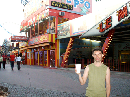 Um in die richtige Stimmung zu kommen, braucht´s erstmal ein Ottakringer ausm Pappbecher! Dann ist alles nur noch "Jubel, Trubel, Heiterkeit", wie es so schön heißt. Bei den Fahrgeschäften interessierte uns vor allem alles, was schnell fährt und gerne auch noch laut dröhnt und röhrt.. |
