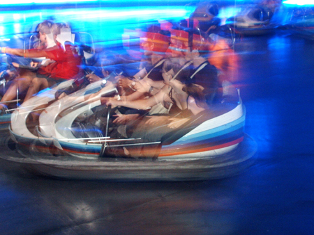 ..und mehr Autoscooter-Action! Die böse Tat der Woche: in gemeinsamer Anstrengung nahmen wir ein Kind aus dem Spiel, das blutend und heulend davon zog und so bald nicht wieder in einen Autoscooter steigen wird.. das war eine reine Erziehungsmaßnahme: ein geborenes Opfer muß lernen, daß es eines ist! |