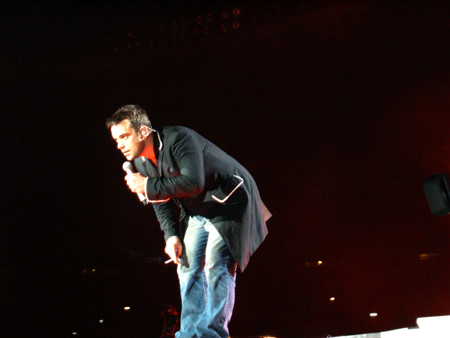 ..dann also Robbie selbst, und ich muß zugeben: ich war begeistert! Nicht, daß ich nun gleich Fan geworden wäre, aber es war eine hervorragende Show, inklusive Stichflammen, die einem fast das Gesicht versengten (aber halt nur, wenn man vorne steht!).. und Chrissy, die ja schon Expertin ist, bestätigte, das es eines seiner allerbesten Konzerte war! |