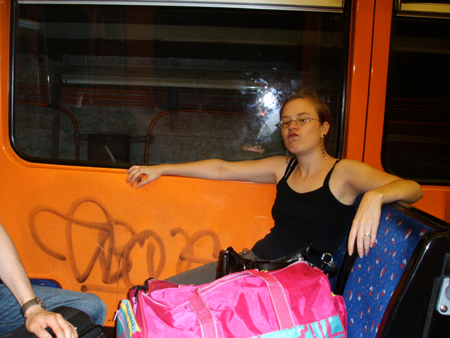 ..und jetzt wird schon von unserem vorläufig letzten Tag in Wien berichtet: Dort rechts sitzt Chrissy in der Wiener U-Bahn.. unterwegs zur Alten Donau.. |