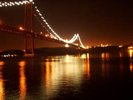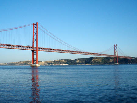 | Die Brücke des 25. April von der Belém-Seite aus gesehen.. dort in der Nähe befinden sich die "DOCAS", das derzeitige In-Ausgehquartier Lissabons. Behaupten sogar schon deutsche Frauenzeitschriften, stimmt auch! Das GEGEN ALLES-Team empfiehlt die Bar "Zonadoca" (Achtung, dienstags geschlossen!) | |||||||||||||||||||||||||||||||||||||||||||||||||||||||||||||||||||||||||||||||||||||||||||||||||||