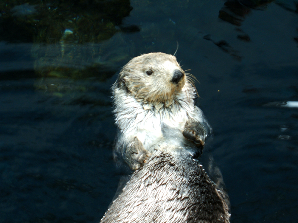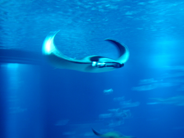 Kein Raumfahrzeug, sondern ein Rochen, unterwegs im großen Becken des Oceanário de Lisboa.. | |