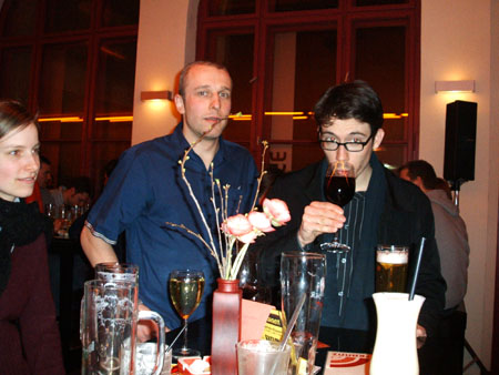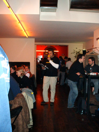 Links zu sehen: Thomas Vogel kommt herbei, um unseren Sieg zu verkünden! Was etwas ungünstig ist, wenn man die letzte Runde gewinnt: Es gibt kein ausführliches Interview, weil alles schon am Einpacken ist, schließlich ist es kurz vor Eins und auch aus dem Studio kommt von Tommy Wosch und Michi Balzer nur noch breitflächiges Gähnen.. beim nächsten Mal sollten wir also einfach mal eine der ersten Runden gewinnen! Haben wir beschlossen.. | |