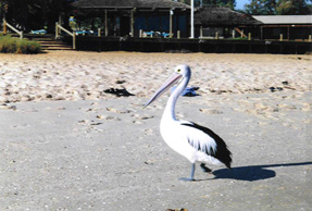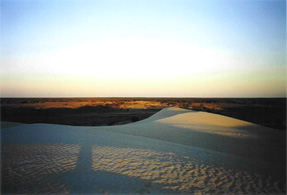 Ein Tag im australischen Outback Die Fahrt geht 100 km nördlich von Mildura, die bewässerten Obst- und Weinbaugebiete werden von struppigem Eukalyptusbusch und dürrem Steppengras abgelöst, ab und zu sind noch Schafe am Weiden, dann geht die Strasse in einen staubigen Schotterweg über- wir sind im Outback! Der Willandra Lake ist ein seit 15000 Jahren ausgetrockneter See von beachtlicher Größe.. wo er lag, ist auch heute noch gut zu erkennen, es ist eine brettflache Ebene ohne einen einzigen Baum, nur von Salzbusch bewachsen, von einem Dünenguertel begrenzt. Die ersten am Wegesrand herumstehenden oder eilig davonhüpfenden und rennenden Kaenguruhs und Emus bestaunen wir noch - aber es werden immer mehr, der Fahrer muss sich zum Teil den Weg freihupen, wenn die Tiere in ganzen Gruppen beieinanderstehen. Große rote, mittelgroße blaugraue (das sind die Weibchen der roten) und kleinere bräunliche Kaenguruhs gibt es, und die beeindruckendsten Erfahrungen machen wir bei den Sanddünen selbst - weil es hier seit 15000 Jahren trocken und karg ist und es kaum menschliche Besiedlung gab, ist alles wohlerhalten.. man findet Muschelschalen im Sand, Fischknöchelchen und Skelette von Wombats.. und die Sandformationen, verschiedenfarbige Sedimentschichten zeigend, sehen wunderschön aus im Abendlicht.. und zum Sonnenuntergang gab es Sekt aus Pappbechern! Unser einheimischer Führer, ein Aborigine wie aus dem Bilderbuch, dunkelhäutig, plattnasig und von lockigem Kopf- und Barthaar beinah zugewachsen, erklaert uns, dass man hier auch menschliche Skelette gefunden habe, mit Hinweisen auf Begräbnisrituale, mindestens 30000, nach neueren Datierungsmethoden sogar über 50000 Jahre alt.. er verstieg sich zu der Behauptung, das seien Leute seines Stammes gewesen, die schon immer in der Gegend gelebt haben, und er sei ihr direkter Nachkomme.. und vielleicht seien die Skelette sogar 100000 Jahre alt, was die ganze Theorie von der afrikanischen Abstammung des Menschen erschüttern koennte.. na, da ist er vielleicht ein bisschen weit gegangen (sollten wir denn die Nachkommen von Beuteltieren sein?) Durch stockfinstere Nacht rumpelten wir dann über Schotterpisten in die Zivilisation zurück.. nicht ohne noch einmal auf freiem Feld anzuhalten, mitten in der Wildnis, der Fahrer löschte alle Lichter des Busses und ich bewunderte einen prachtvollen Sternenhimmel, die Milchstrasse, ein leuchtendes Band, wirklich strahlend, das Kreuz des Südens, die Magellanschen Wolken.. und die bekannten Sternbilder, nicht wie bei uns als vereinzelte Punkte in der Dunkelheit, sondern vor einem leuchtenden Hintergrund von Abertausenden Sternen.. Ein ganz wundervoller Tag! |