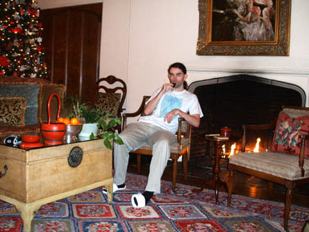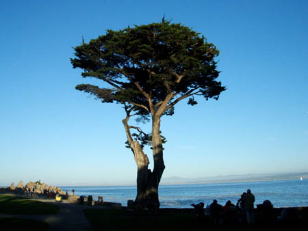Puh, endlich angekommen! Das tat gut, in einem wirklich hübschen, komfortablen und auch ordentlich teuren Bed & Breakfast abzusteigen. In Monterey, California! Denn die Anreise war schon strapaziös, es ist doch verflucht eng in der Economy Class, das Essen an Bord war allerdings besser als man von der Lufthansa erwartet.. Zeit- und Klimaumstellung und eine lange Busfahrt durch ein verregnetes Stück Kalifornien.. aber alles löste sich dann in Wohlgefallen auf, bei Häppchen und Sherry in der warmen, gemütlichen Lounge, am Kaminfeuer und noch mit dem Weihnachtsbaum in der Ecke.. fühlte sich fast an wie zuhause ankommen (nachdem wir erst etwas mißtrauische Blicke erdulden mußten, paßten unsere Rucksäcke und sonstige Erscheinung wohl auf demn ersten Blick nicht in das elegante und geschmackvolle Ambiente des Hauses).. | |