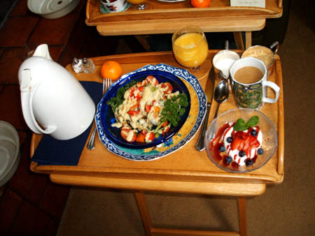 Wir hatten sogar einen eigenen Kamin im Zimmer! Da schliefen wir natürlich ganz wunderbar.. und auch wunderbar war das Frühstück, daß auf dem Zimmer serviert wurde.. | |