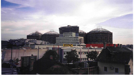 Die ehemaligen Gasometer-Anlagen in Erdberg, jetzt das Einkaufszentrum "G-Town". Was "ZGONC" bedeuten mag? Fragt mich nicht.. | |