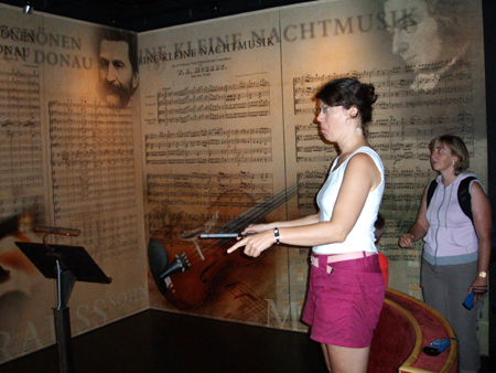 Und so viel gibt es zu entdecken! Das "Misttelefon" etwa, oder die Klangausstellung, bei der man die Wiener Philharmoniker dirigieren konnte (und ich bin stolz, daß ich den ganzen Radetzkymarsch durchhielt!). Danach verschwanden wir im Untergrund, in den Katakomben.. |
