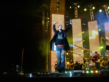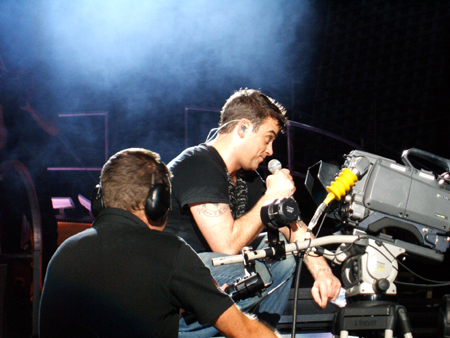 ..dann also Robbie selbst, und ich muß zugeben: ich war begeistert! Nicht, daß ich nun gleich Fan geworden wäre, aber es war eine hervorragende Show, inklusive Stichflammen, die einem fast das Gesicht versengten (aber halt nur, wenn man vorne steht!).. und Chrissy, die ja schon Expertin ist, bestätigte, das es eines seiner allerbesten Konzerte war! |
