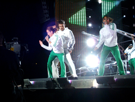 Ganz furchtbar: Die neue Single "Rudebox"; gefällt uns nicht. Aber nette Choreographie. Alles in allem hab ich nach dem Konzert über alle Backen gestrahlt: Selten so guter Stimmung gewesen! Das hat sich tatsächlich gelohnt! | |